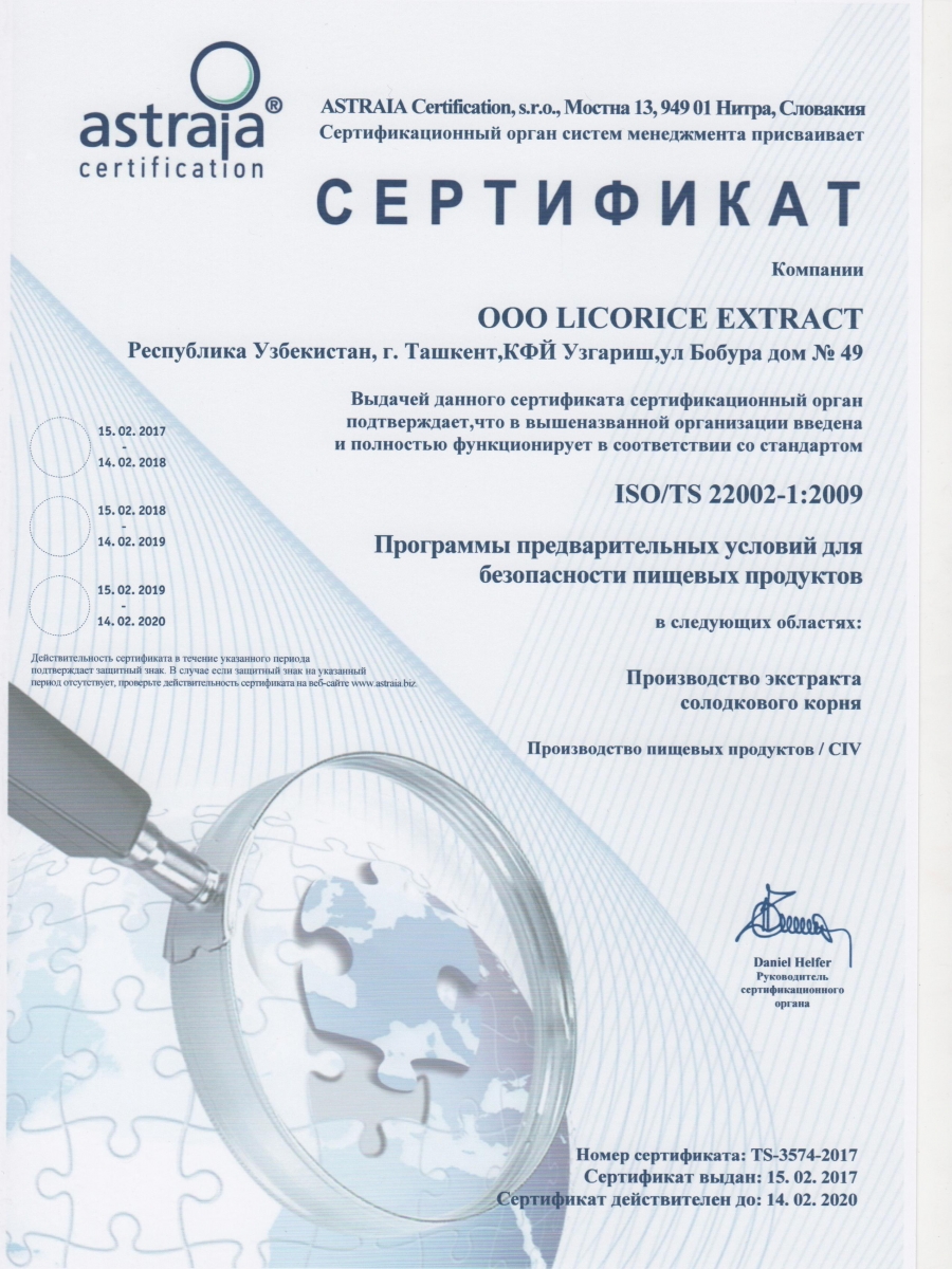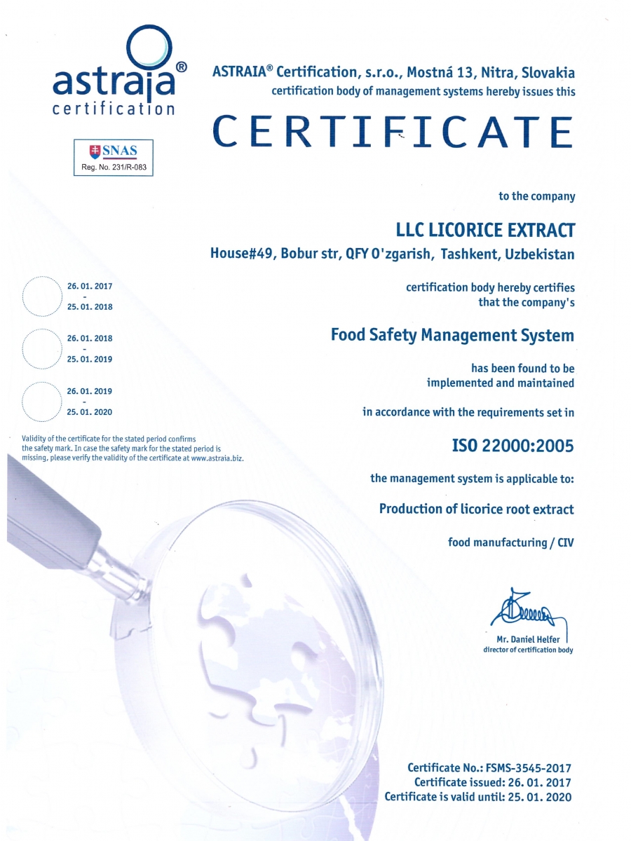 Only you have to write on the website in search, the name of our company LLC Licorice Extract or certificate number.